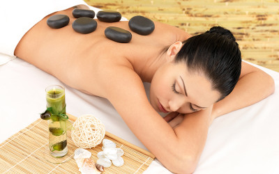 Technique aux pierres volcaniques de basaltes. Une fois chauffées, elles procurent une sensation de bien être et ont des vertus thérapeutiques.
